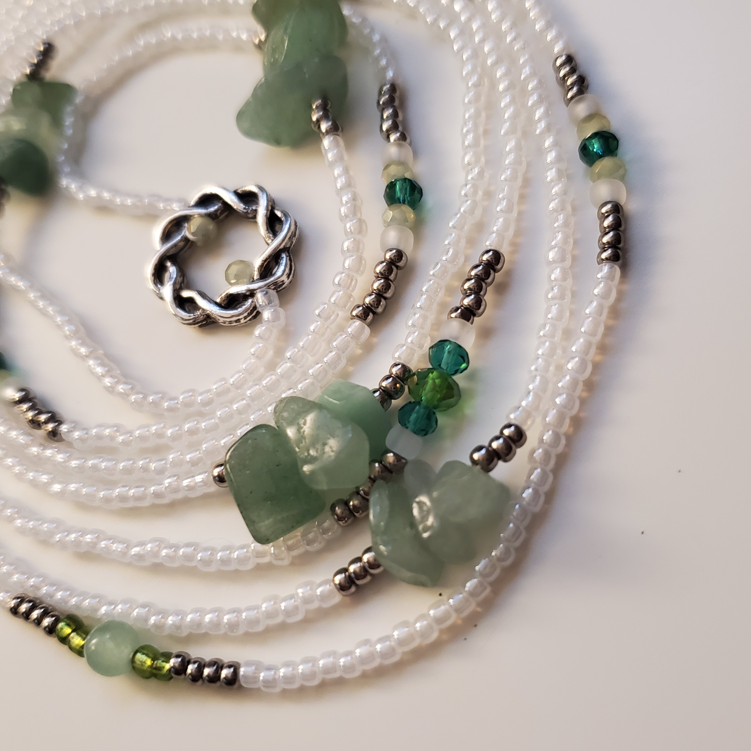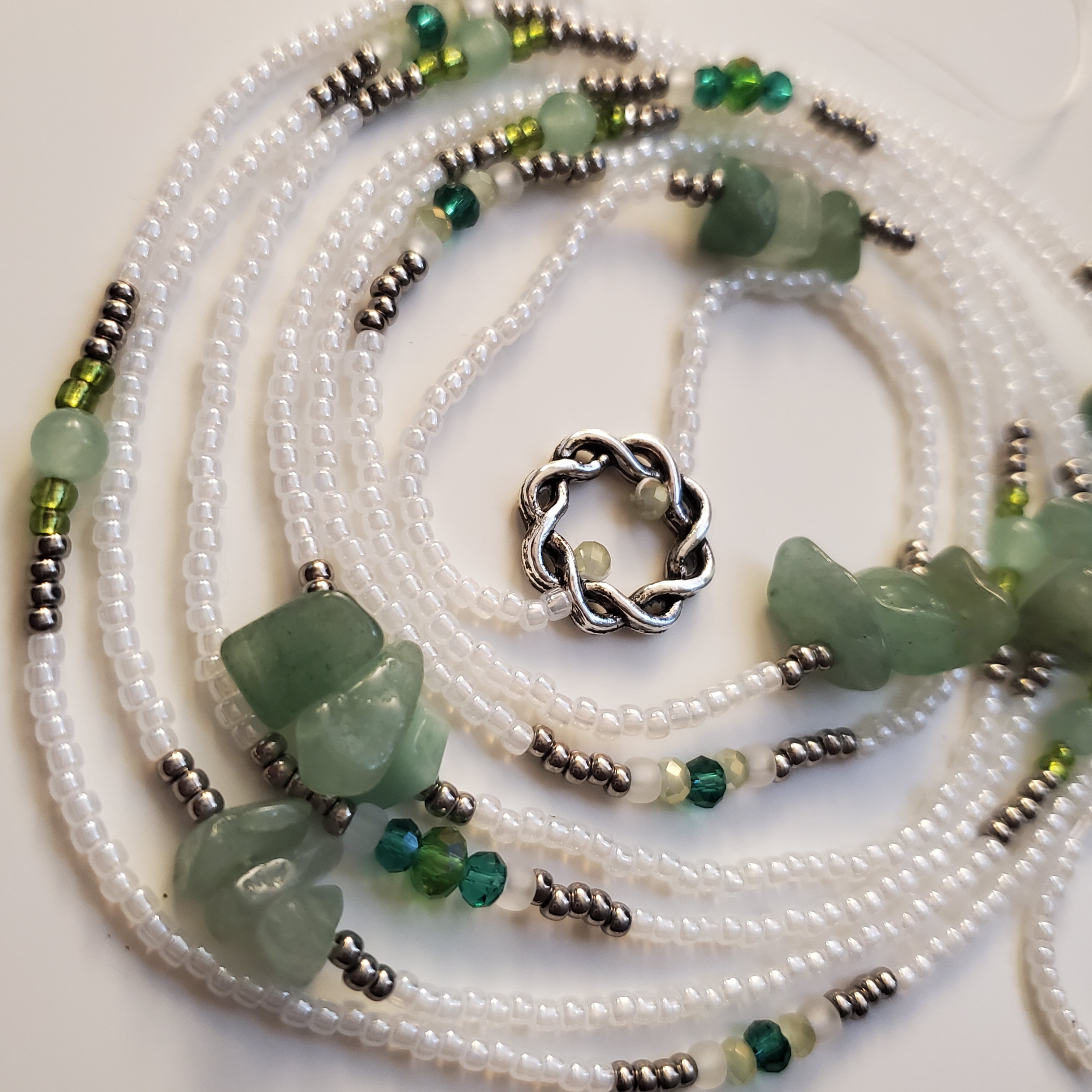 Wrap your waist in shades of green glass seed beads, chip beads and glass rondelles. Sparkle and shine with 2 beautiful strands