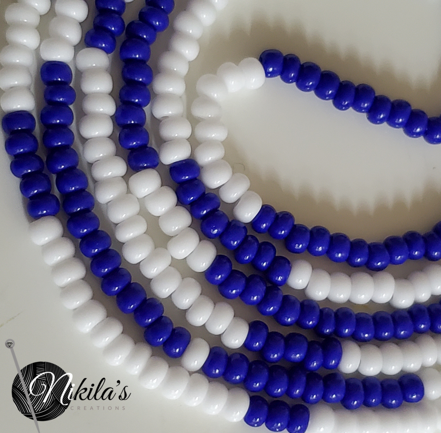 Go simple with this Royal Blue and White Tie-On waist beads *Tie-on style waist beads *Royal Blue and White 8/0 seed beads *45-50 inches in length