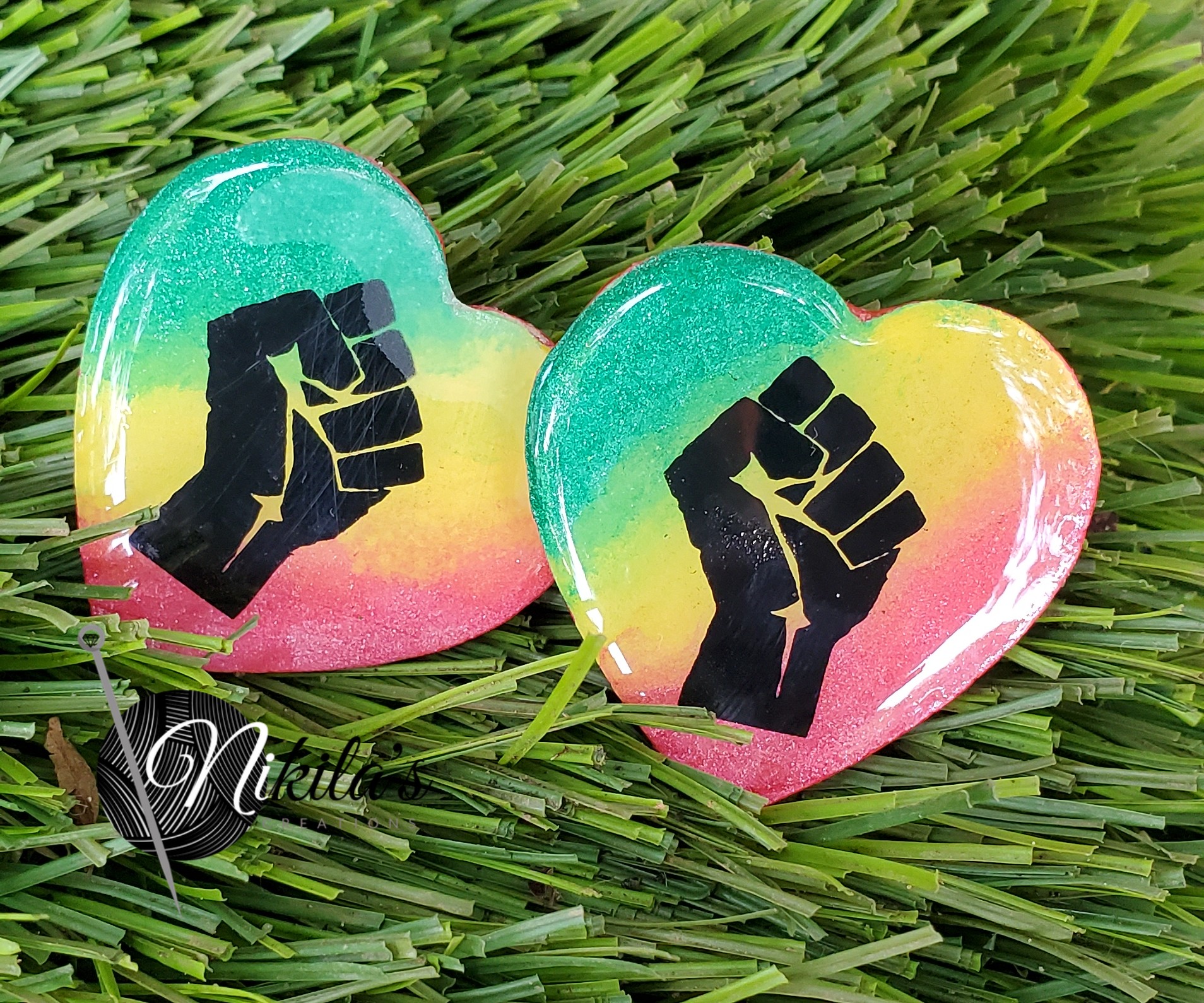Sport your pride with these hand painted, multi-medium heart earrings. 1.5 inches Coated with epoxy for weather resistance.