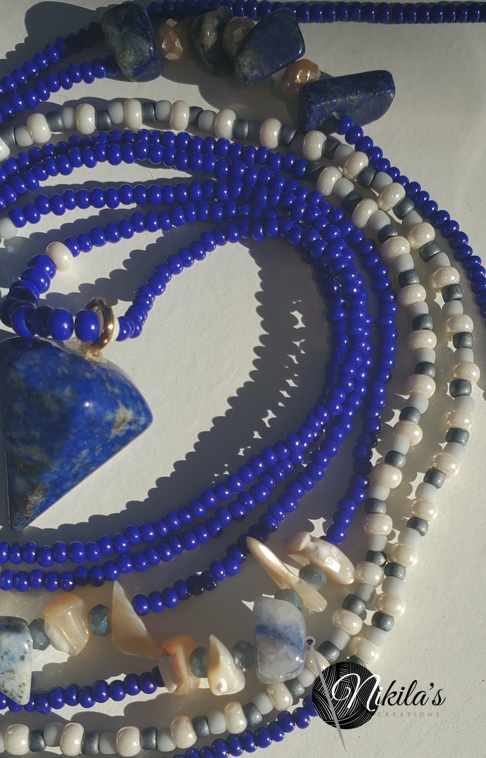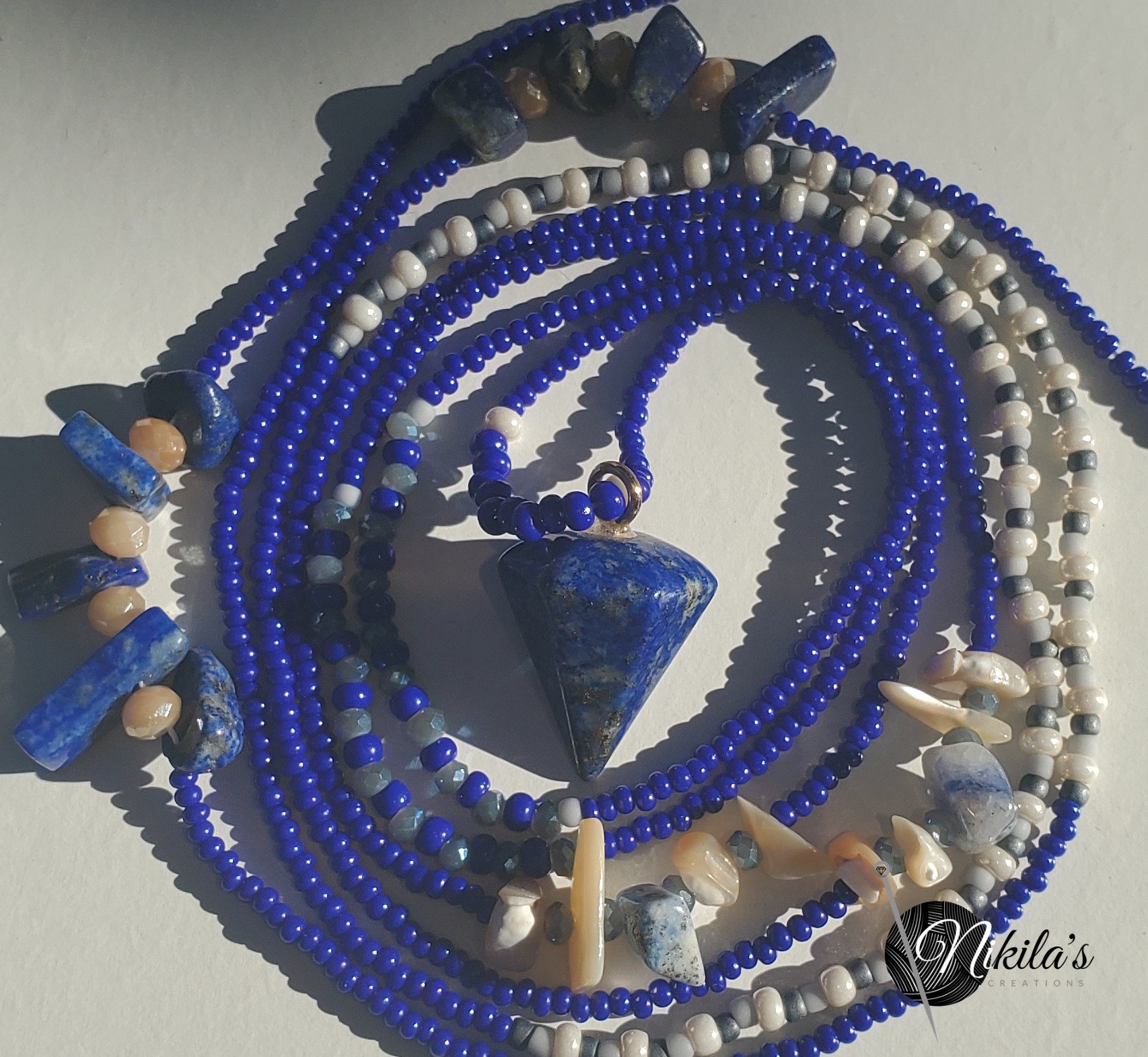 Charmed with a Lapis pendulum charm Fits up to 55 inch waist Handmade one of a kind.