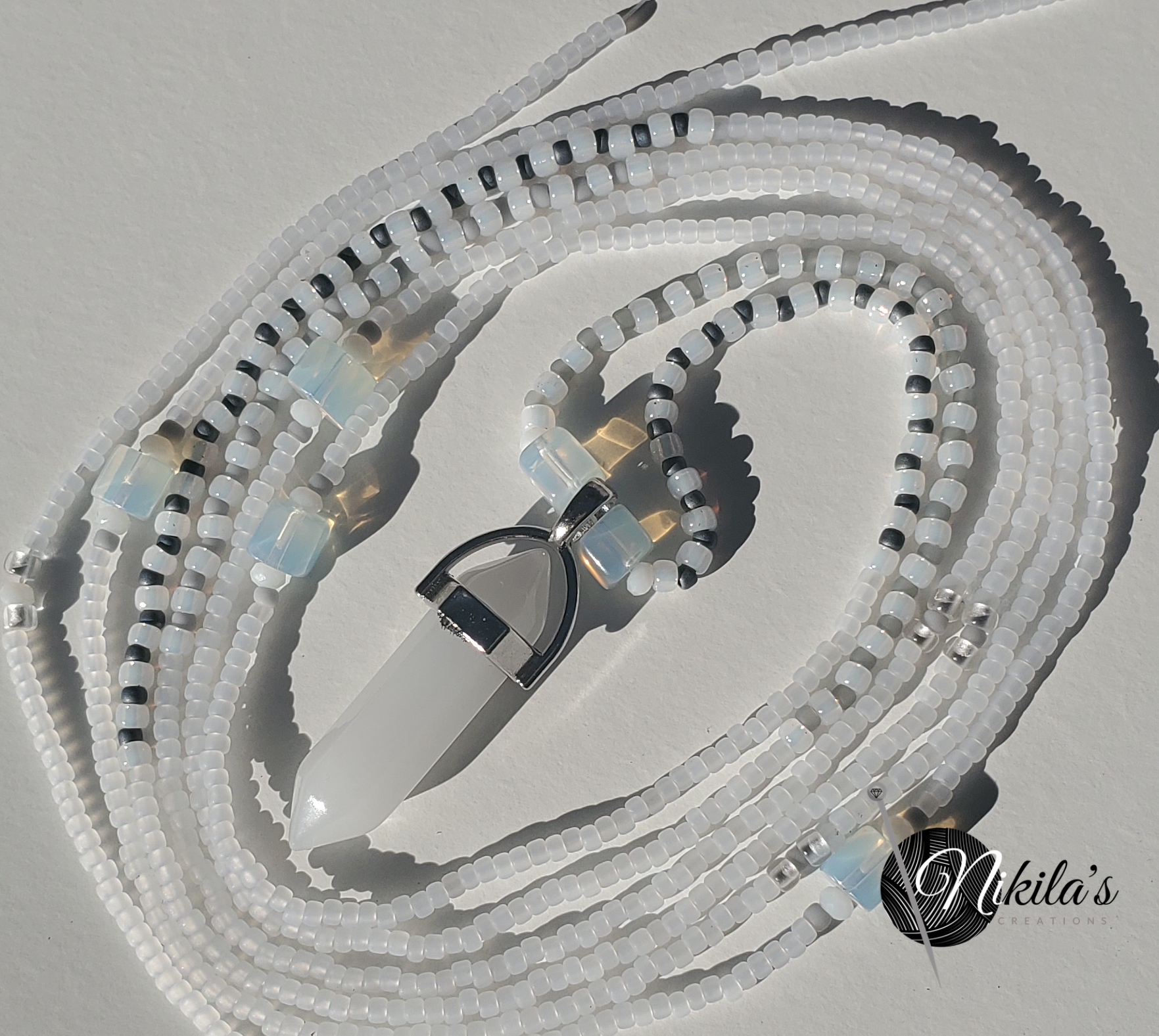 Milky Quartz dressed up in gray accents Fits up to 55 inch waist one of a kind will not be duplicated